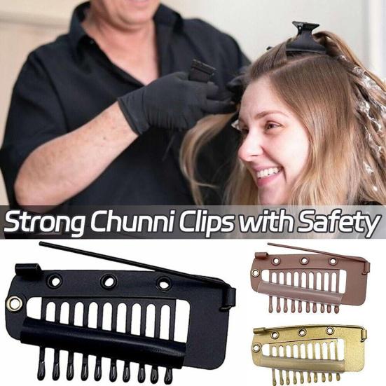 Yousheng 5Pcs Wig Clip with Safety Pin 10-Teeth Hair Extension Snap Clip Heavy Duty Metal Invisible Wig Securing Comb Chunni Dupatta Setting Clip