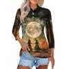 Women's Fashion Casual Lapel Short 3/4 Sleeve Halloween Print Shirt Women's Button Up Tops