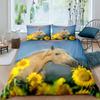 3D Horse Duvet Cover King Queen Size Yellow Sunflower Bedding Set Floral Animal Theme Quilt Cover Wildlife Soft Comforter Cover