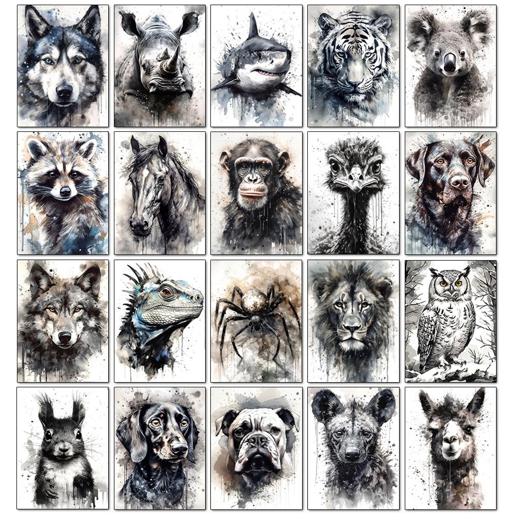 Black and White Animal Diamond Art Painting Dog 5D Full Diamond Mosaic Embroidery Cross Stitch Set Home Decoration Diy