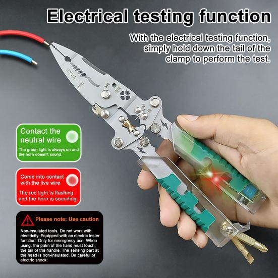 Foldable Wire Stripper Cable Cutter with Voltage Detector Ergonomic Design Electrical Pliers Multifunctional Wire Stripping Pliers