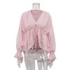 Fashion Wind New Arrival Fashion V-neck Lace-up Long Sleeve Shirt Top V-Neck Long Sleeved Shirt