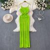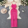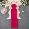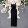 Bohemia Seaside Holiday Hollow Backless Spaghetti Straps Knitted Dress Women's High Waist Slim Looking Travel Beach Long Dress
