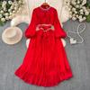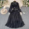 2024 Spring Clothing New Arrival French Fancy Classic Style Western Style Diamond Tassel Pleat and Waisted Long Dress Tide