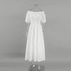 French Style Elegance White off-Shoulder Puff Sleeves Waist-Tight Dress Sexy One Line Neck Dress
