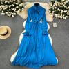 Long Sleeves Dress Spring Women's 2024 New Arrival French Elegant Retro Bows Shoelace Waist-Controlled Large Hem Chiffon Dress
