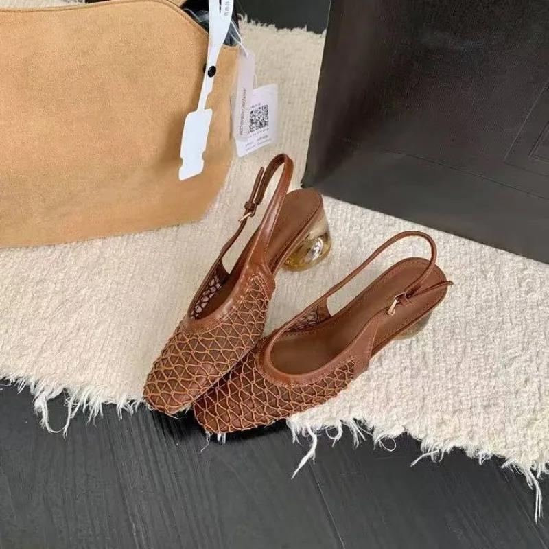 Women's Single Shoes with Heels Strange Style Square Toe Fabric Women's Mules Leisure Breathable All-match Zapatillas De Mujer
