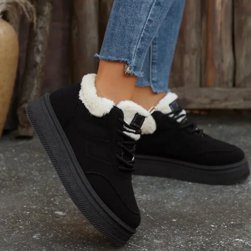 Women's Ankle Snow Boots Fur Suede Short Plush Platform Shoes Winter Casual Walking Sports Flats Comfortable Cotton Botas Mujer
