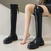 Autumn Winter Stretch Over The Knee Boots Women Fashion Round Toe Square Platform Thick Heels Long Booties Women's High Boots
