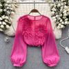 Women's Spring Silm Easiest for Match Puff Sleeves Pullover Tops