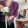 Spring and Autumn Bow Tie V-neck Long-sleeved Knitted Sweater, Gentle White Women's Loose All-match Top 6738#