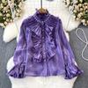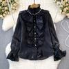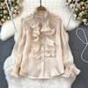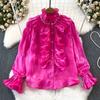 Lady Horn Long Sleeves Single-Breasted Glossy Casual Shirt