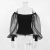 Fashion New Sexy off-the-Shoulder Mesh Puff Sleeves Silm off-Shoulder Tops Sexy Mesh Sleeve Top