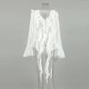 New French Style See-through Gas Texture V-neck Bell Sleeve Frill Shirts V-Neck Lotus Leaf Shirt