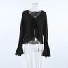 Fashion Style Summer Black Sexy V-neck Chiffon See-through Shirt V-Neck Flared Sleeve Shirt