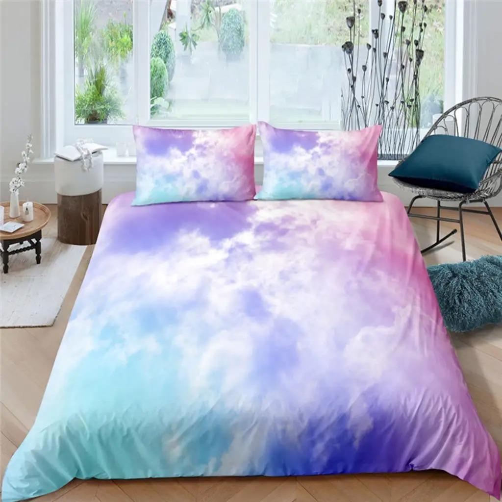 Home Living Luxury Colored Clouds Print 2/3Pcs Soft Duvet Cover PillowCase Queen and King Size Kids Bedding Set EU/US/AU Size