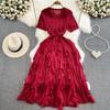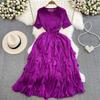 Sanzhai Ruched Fairy Round Neck A- Line Ruffled Long Dress