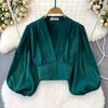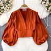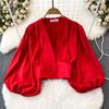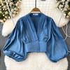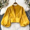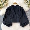 Fashion Lantern Long Sleeve High Waist Exposed Navel Silm Pullover