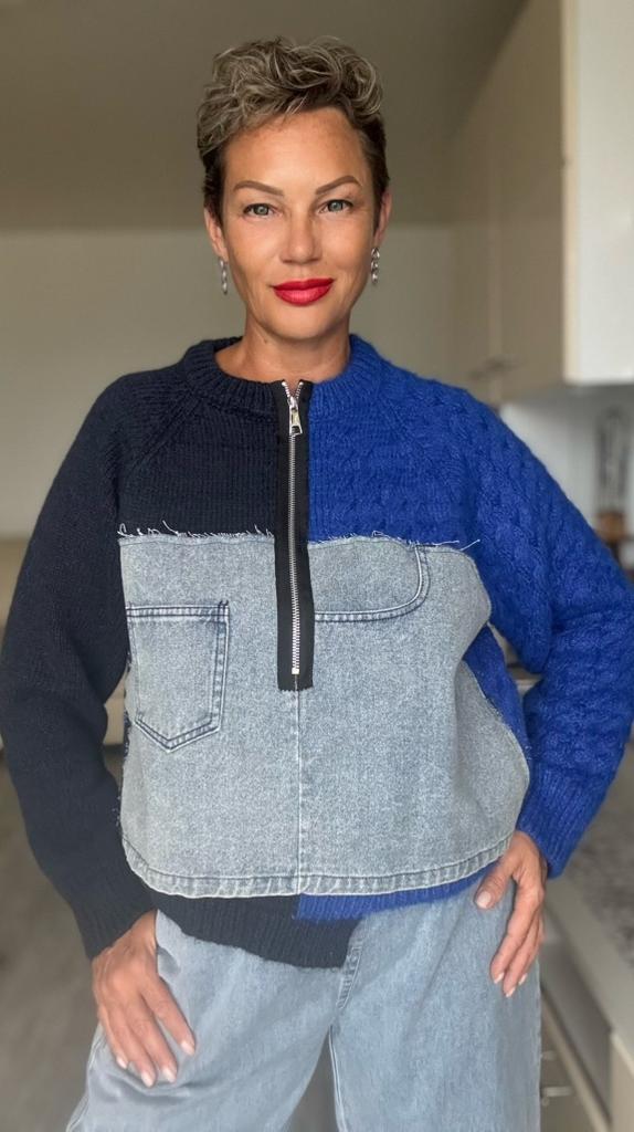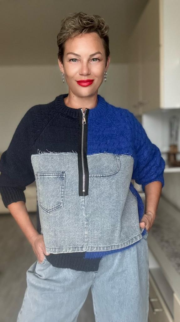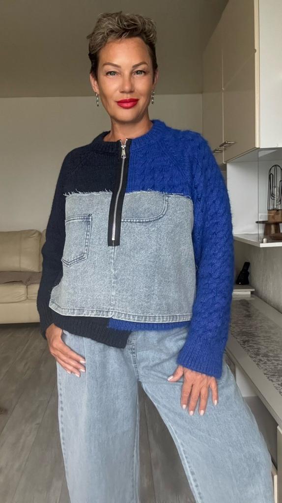 Dimanaf 2025 Autumn Jacket Women Sweaters Coat Patchwork Wadded Coat Knitting Pockets Sweater