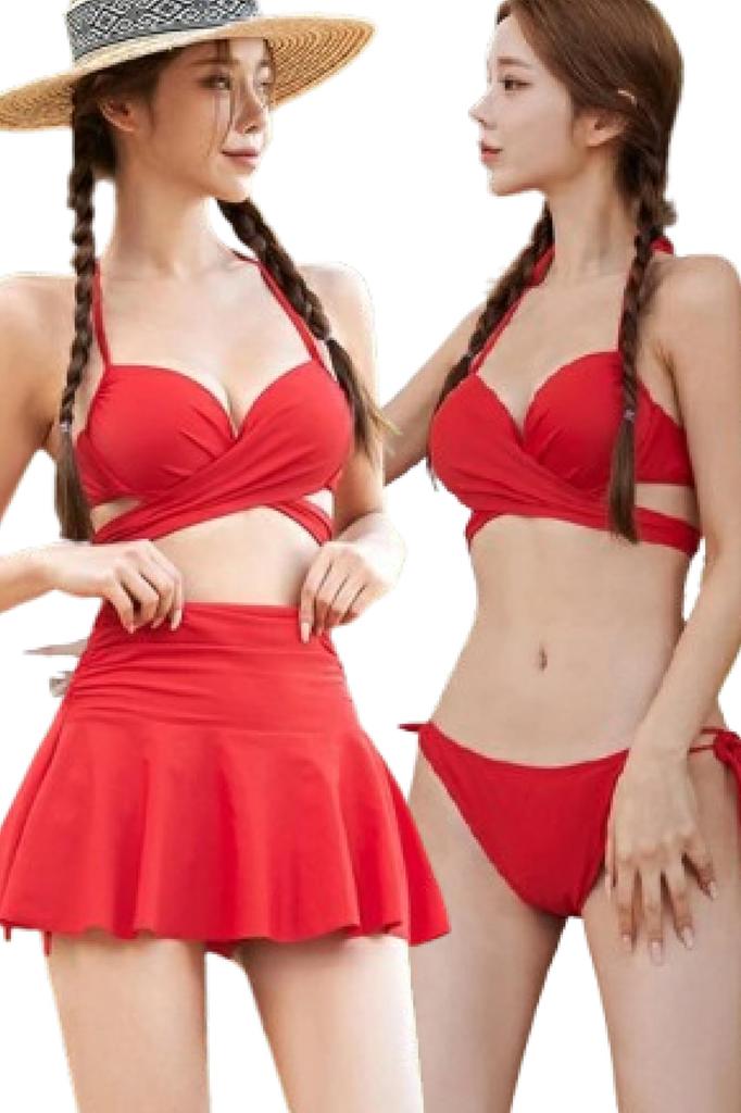 ✨[Cute and perfectly flattering] FASHIONFAN official cross design bikini♪♪ ✨[Subtle coverage of areas of concern!] ✨Includes a cover skirt that completely hides your lower belly and tummy! ✨Recommended for those who find bikinis a bit too daunting