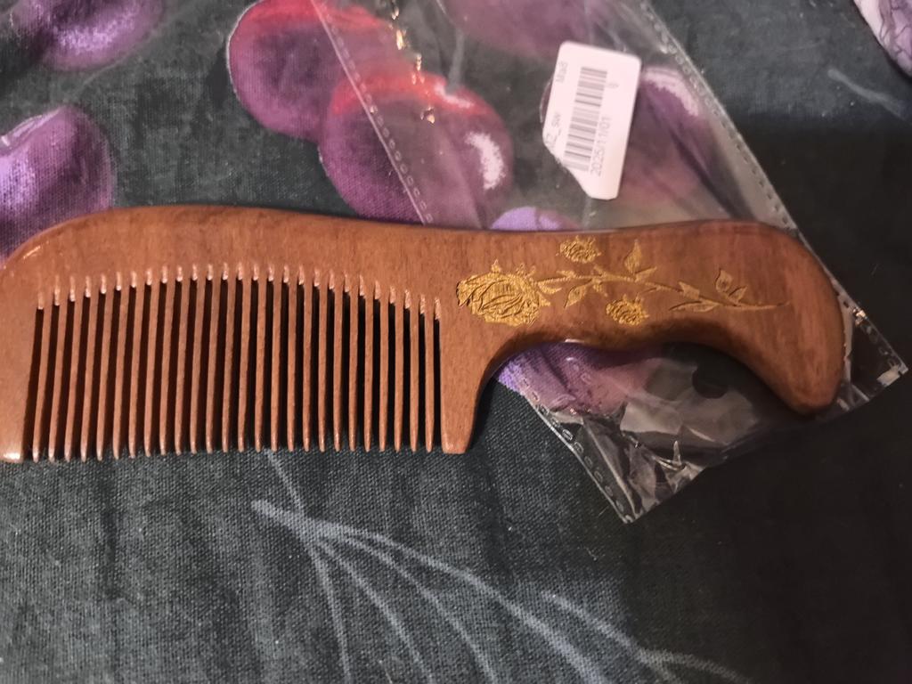 This is a good comb, so pleasant for the hair and scalp. I tried combing my hair with a sandalwood comb once, and since then I only buy sandalwood ones. Sandalwood is even smoother to the touch than other wood, and the hair combs easily.