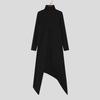 INCERUN Men Turtleneck Long Sleeve Texture High Splits Irregular Long Tunic Tops