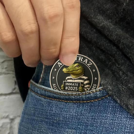 Portable Conversation Starter: Whether carried in a pocket or displayed on a desk, this coin serves as a portable piece of humor that not only represents Florida's wild side but also sparks engaging discussions about the intriguing crocodile prison myth.