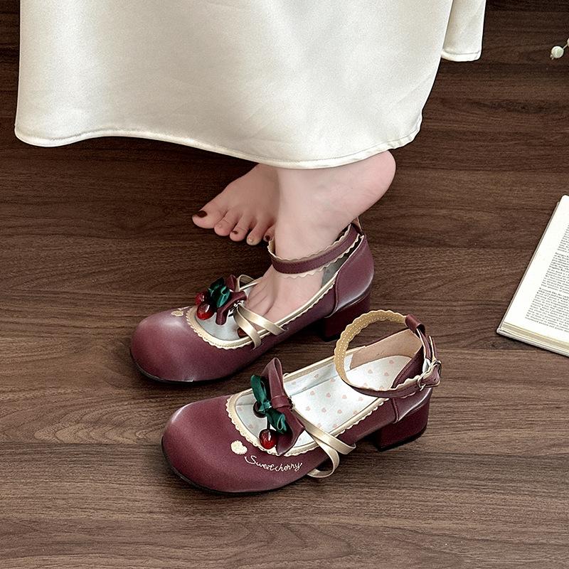 Sweet and Cute Bow Round Head Thick Heel Women's Summer New Sweet and Versatile Casual High Heel Single Shoes