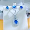 Simulated Pigeon Blood Red Ruby Jewelry Set: Ring, Earrings, and Pendant Necklace