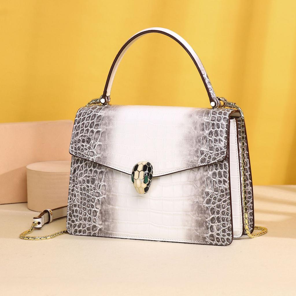 Crocodile Belly Pattern Women's Single-shoulder Crossbody Bag, Fashionable Women's Bag, Snake-head Women's Bag, White Leather Bag