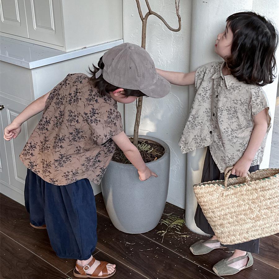 Jiaye Tongpin 2025 Kids' Floral Short-Sleeve Retro Shirt for Boys and Girls