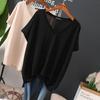Summer Plus Size V-Neck Short Sleeve Women's T-Shirt - Ice Silk Loose Fit