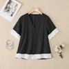 ZANZEA Women Casual V-neck Lace Patchwork Short Sleeve Loose Blouse