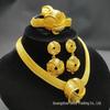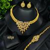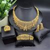 24K Gold-Plated Bridal Jewelry Set: Necklace, Earrings, Ring & Bracelet for Middle Eastern, Indian, and Nigerian Weddings.