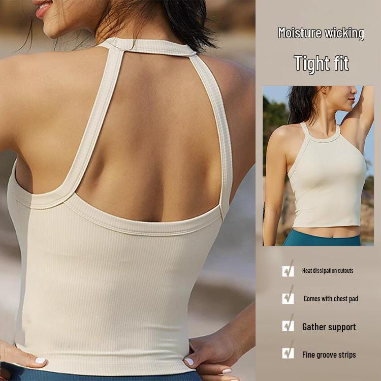 Women's Padded Sports Yoga Vest - Beautiful Back Design, Pilates Fitness Top