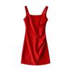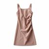 Women's Solid Color Square Neck Sleeveless Pleated Bodycon Summer Dress