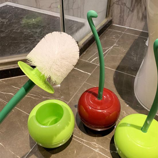 Yousheng Toilet Brush Set with Base Cherry Shape Ergonomic Non-Slip Handle Bright Color Bathroom Cleaning Brush