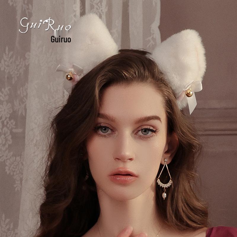Rose Plush Cat Ears Headband with Bow and Bell - Women's Hair Accessory