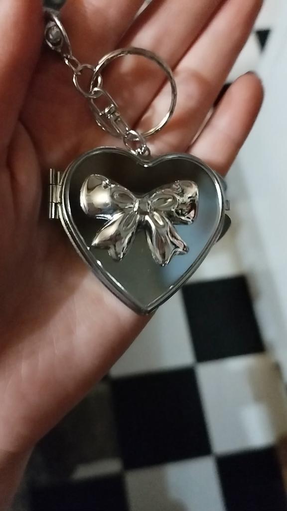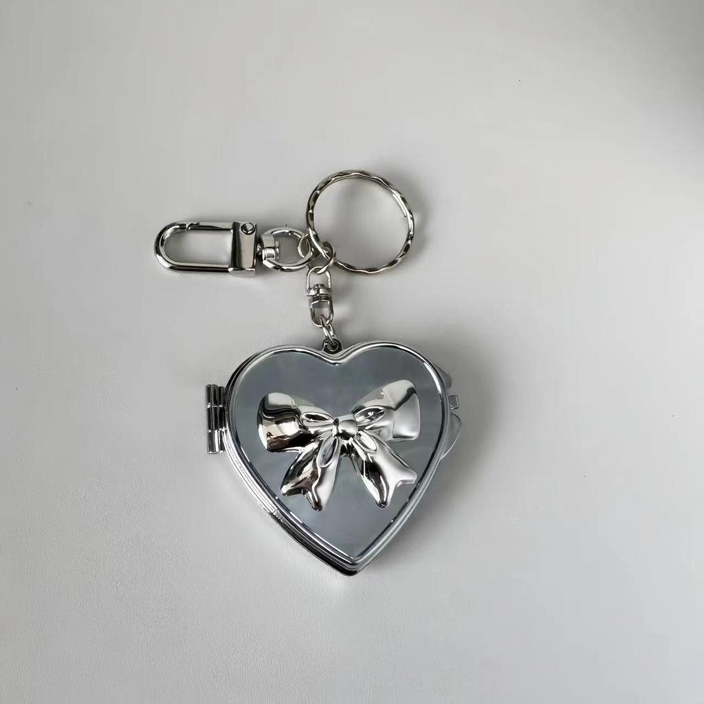 Korean Vintage Y2K Silver Heart Bow Pendant Keychain Charm