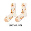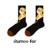 Women's Retro Oil Painting Mid-Calf Socks - 2025 Autumn Cotton Trend, Boneless Design for Couples