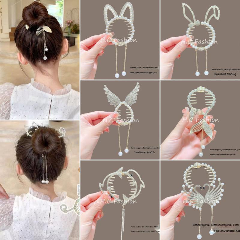 Children's Pearl Rhinestone Claw Hair Clip - Gentle Hold, No Damage Ponytail Buckle Hairpin