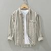 Spring and Summer Cotton Linen Men Tops Japanese Style Vintage Striped Long Sleeve Shirt Male Daily Square Button Shirt with Pocket