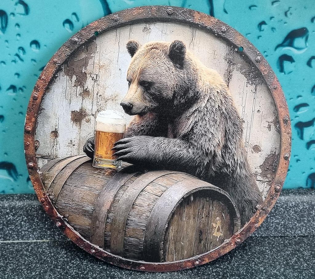 Wooden Sign with Bear & Beer Barrel Pattern - Unique Wall Pediments - Ideal for Front Door, Yard, Wall Decor