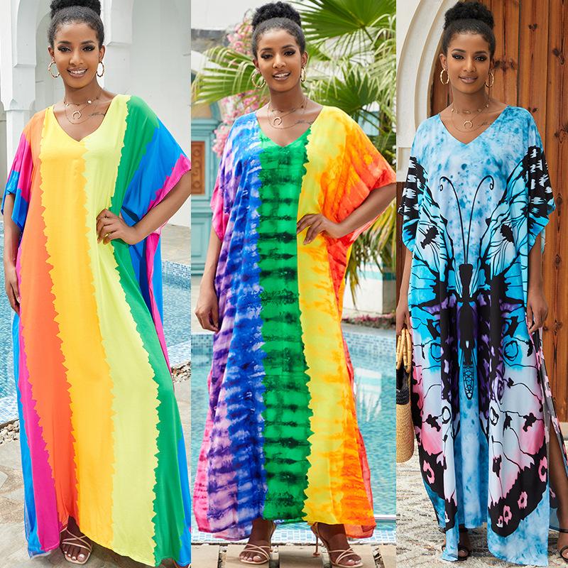 2023 European & American Cotton Beach Cover-up: Loose Robe-Style Long Dress Swimsuit Outerwear for Women