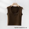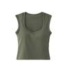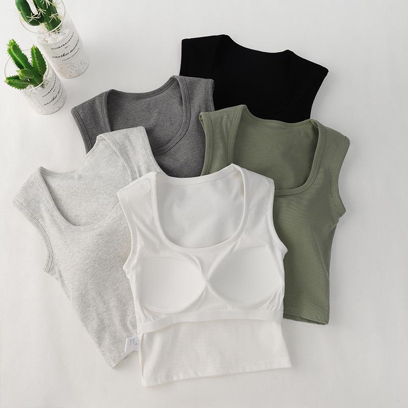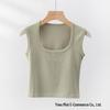 Discover the ultimate blend of style and comfort with this women's sleeveless top, designed for a sleek and modern look. Featuring a square neckline and wide shoulder straps, this camisole offers a secure and flattering fit around the underarms while ensuring no unwanted exposure. Made from high-quality cotton material, it boasts a solid pattern that provides both breathability and a soft touch against the skin. The integrated chest pad adds an extra layer of convenience and comfort, making this top a versatile addition to your wardrobe for any occasion.