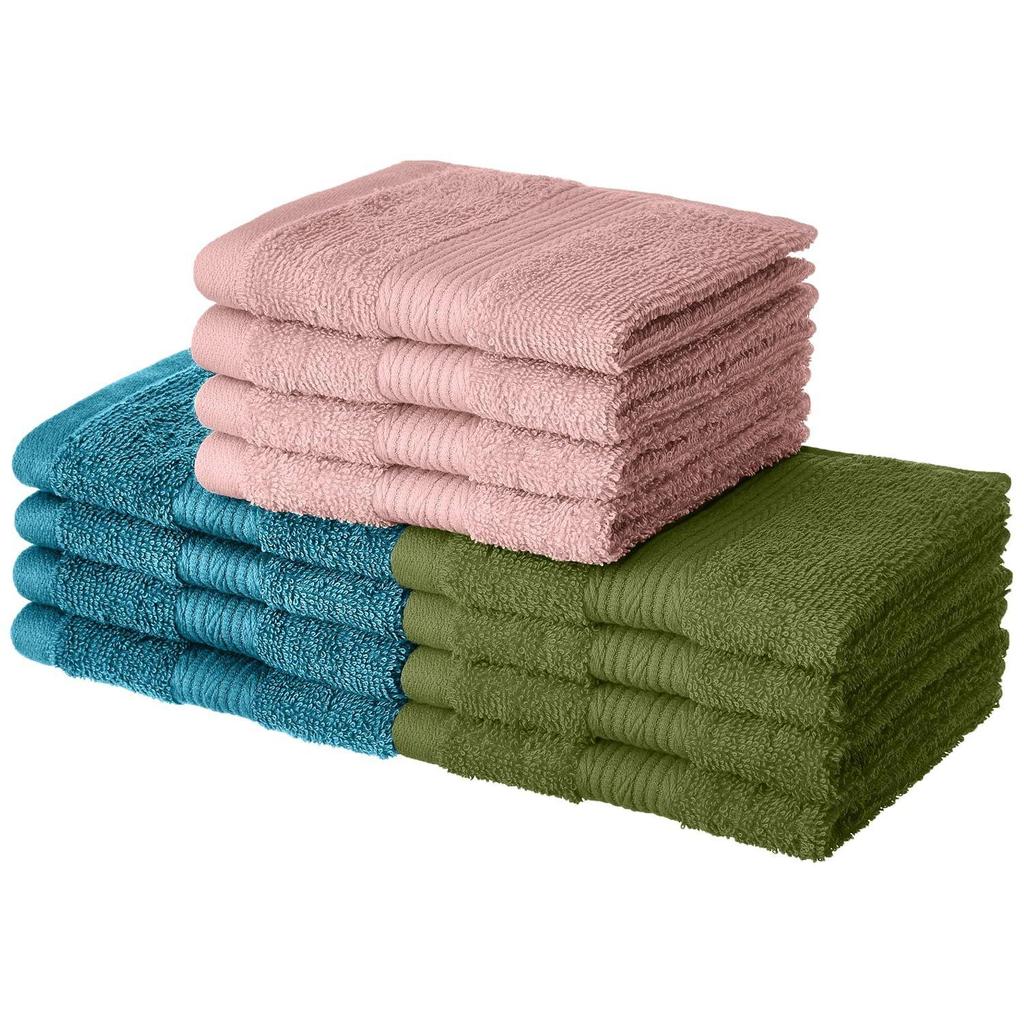 100% Cotton 12 Piece Towel Set, 500 GSM (Turquoise Blue, Olive Green and Baby Pink)