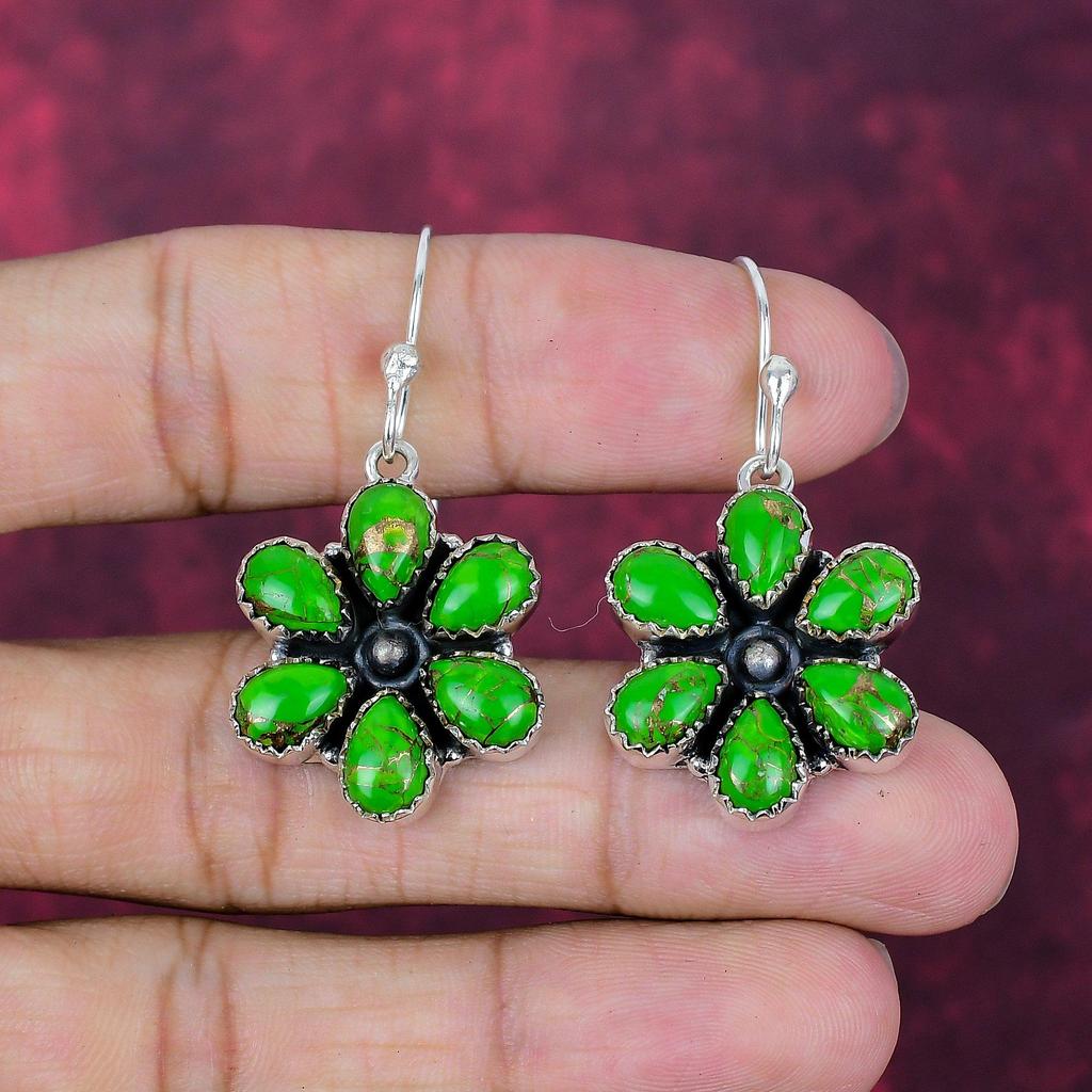 Green Copper Turquoise Handmade Gemstone Earrings, 925 Solid Sterling Silver Earrings Birthstone Jewelry, Love Forever Gift