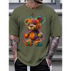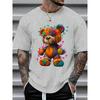 Men's Summer 100 Cotton Fashionable Casual Sports Loose Large Cartoon Teddy Bear Pattern Printed Round Neck Short Sleeve T-shirts
