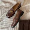 Sheepskin Leather Retro Small Gold Buckle Lazy Single Shoes One Pedal Thick Heel Women's Small Leather Shoes