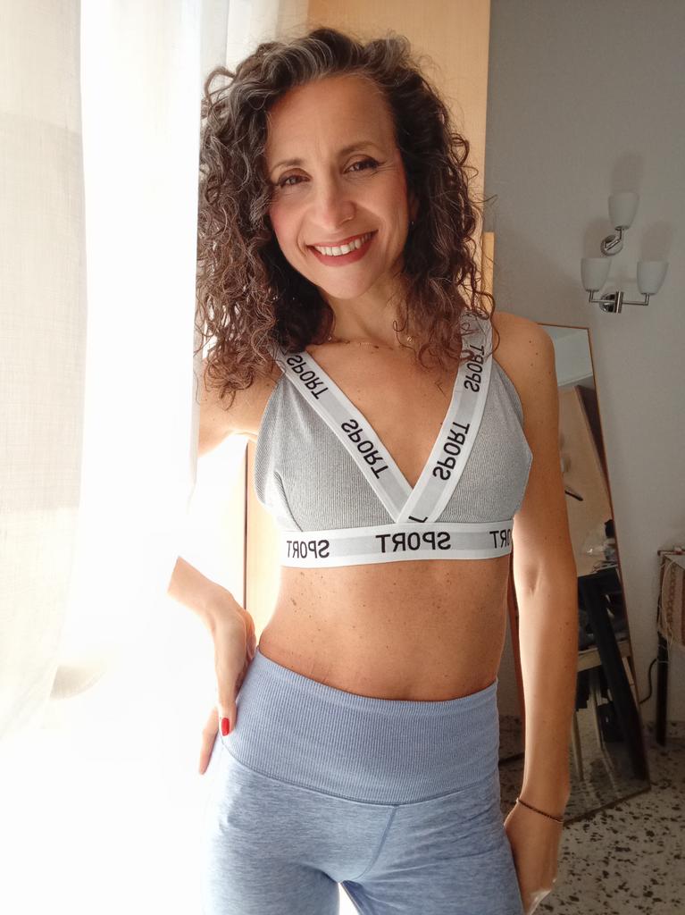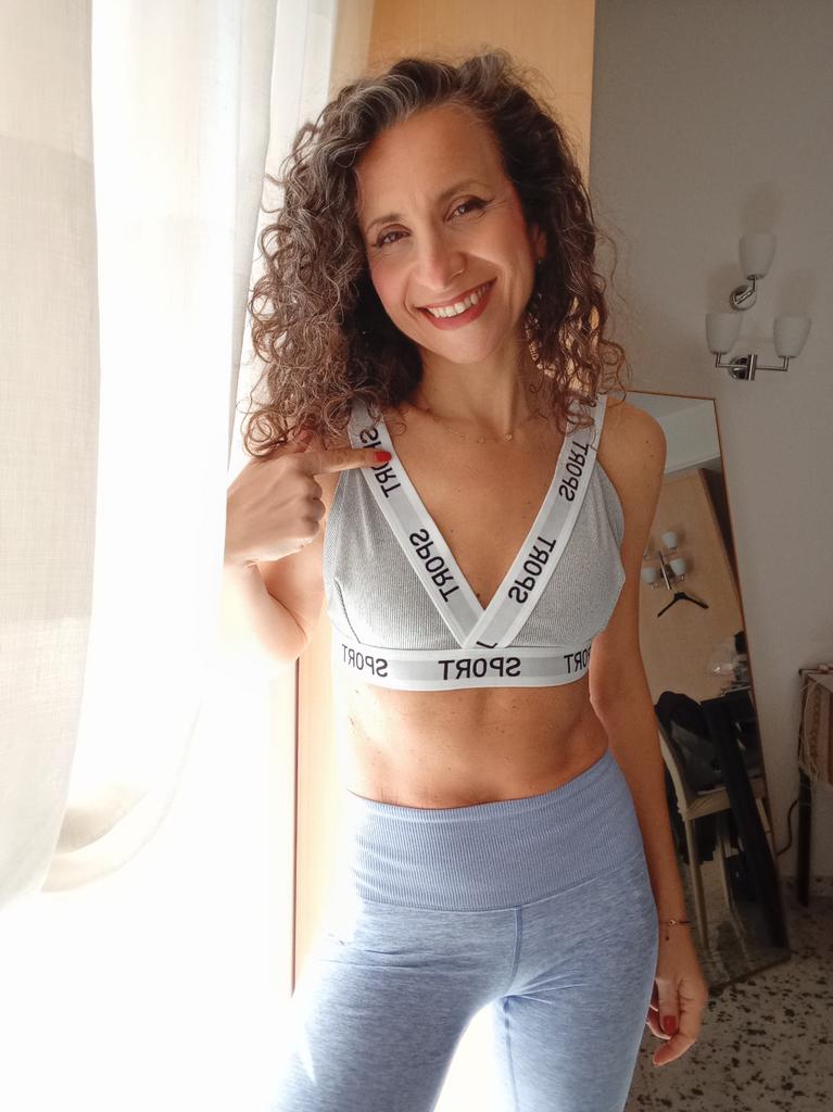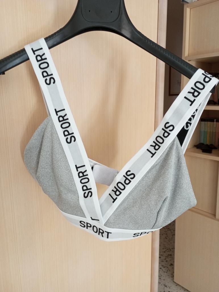 Comfortable and Trendy Sport Bra – Size M perfect! ⭐⭐⭐⭐⭐ Material and Comfort: The bra is made of nylon, which makes it super elastic and pleasant on the skin. The fabric has a very fine ribbed texture that makes it breathable, ideal for workouts or simply for comfort at home. It has no annoying underwires, so freedom of movement is total. Fit and Size: I took the Medium size and I must say it fits perfectly (it corresponds to a classic European M). The wide straps with the word "SPORT" are not only aesthetically pleasing, but also offer good support without digging into the shoulders. The elastic underbust band stays firmly in place without being too tight.. Design and Details: The "V" design is very feminine and flatters the figure well. On the back, it has a classic hook-and-eye closure (as seen in the photo), which allows for precise adjustment based on your own circumference. The grey color is very versatile and easy to match with any leggings.. Conclusions: Excellent value for money! It arrived well packaged and on time. If you are looking for a sports bra that is both functional and stylish, this is the right purchase. I will definitely buy another one in a different color! 👟💪